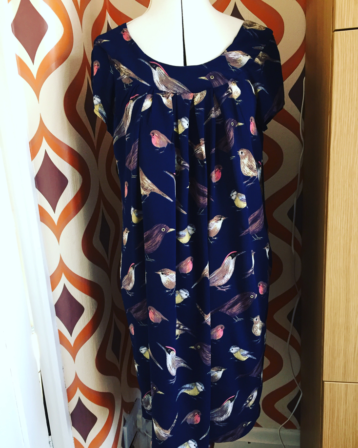 I bought some fantastic navy blue georgette with birds printed on it from Abakhan in Manchester the other week (fabric buying ban failed!). I fell in love with the design and justified it as I am making an evening dress in georgette in a few weeks' time and wanted to practice. The pattern I had in mind was Butterick B5488 which came free with issue 38 of Love Sewing Magazine. I really like the loose tunic style and semi-structured neckband on this dress.